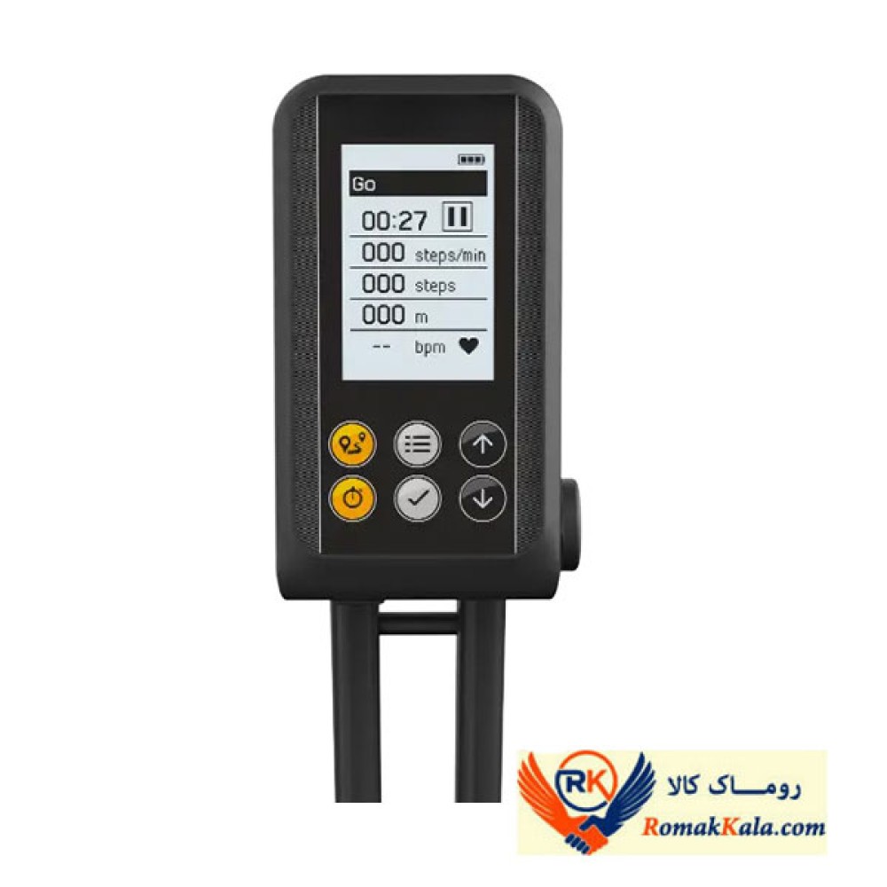 8) نمایش بازخورد: زمان، مسافت، SPM (گام در دقیقه)، گام ها، ضربان قلب (با بند ضربان قلب)، کالری