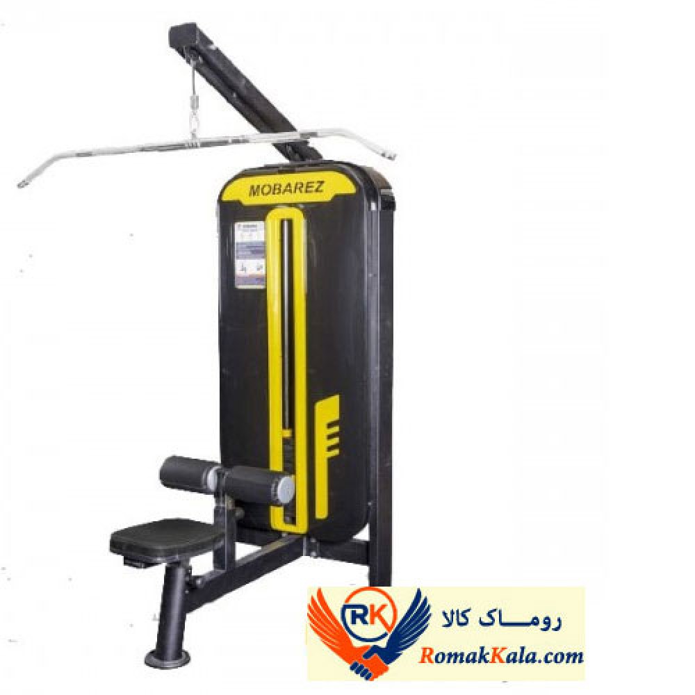 - رو بروی دستگاه بنشینید و رانها را زیر بالشتک قرار دهید . میله ها را با دستهای باز بگیرید . در حالیکه سینه را بیرون می دهید و